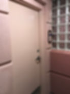Lastly, the tile colors are an unusual combination (another shared feature among the DHS restrooms): arrangements of square-shaped peach, navy and seafoam clusters accentuate the otherwise off-white tiles. It's odd, but it works here, mainly due to the wall tiles tying things together.